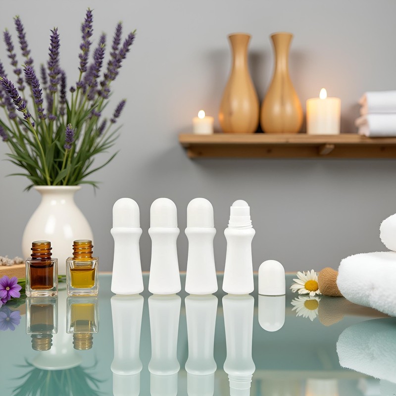 - PACKAGE CONTENTS: Set of 4 white plastic roller bottles, each with 75ml/2.5 fl oz capacity, perfect for essential oils and DIY beauty products
