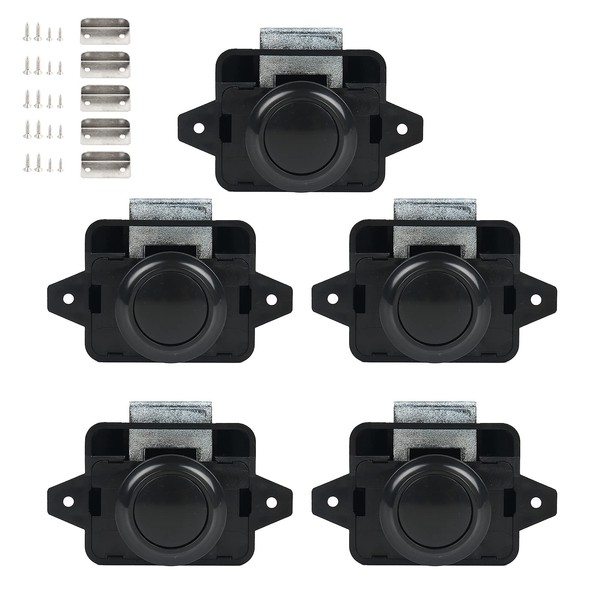Push Button Catch Door Lock, Pack of 5 Keyless Cupboard Pull Lock, Keyless Locks Latch Button Cabinet, Push Lock, Furniture Locks Lock for Motorhome, Caravan, Van Cabinet Door (Black)