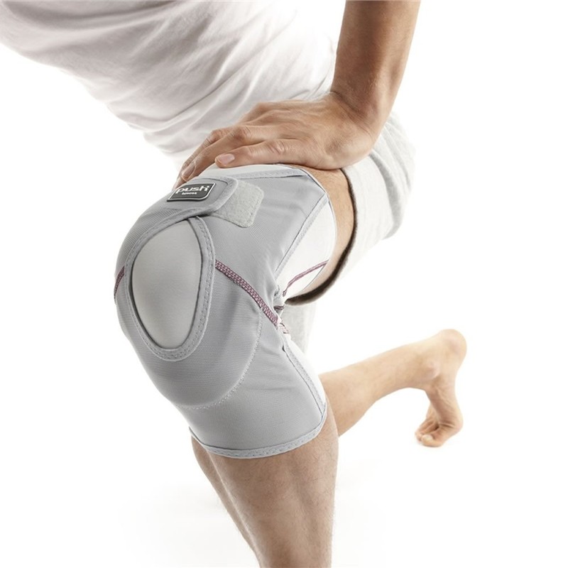 The push care knee brace provides compression around the knee joint, which improves the feeling of stability in the joint. The compression can be individually adjusted above the knee joint as required. A pad exerts pressure on the hamstring and supports the kneecap. The good anatomical fit ensures an optimal hold of the bandage, even when running.