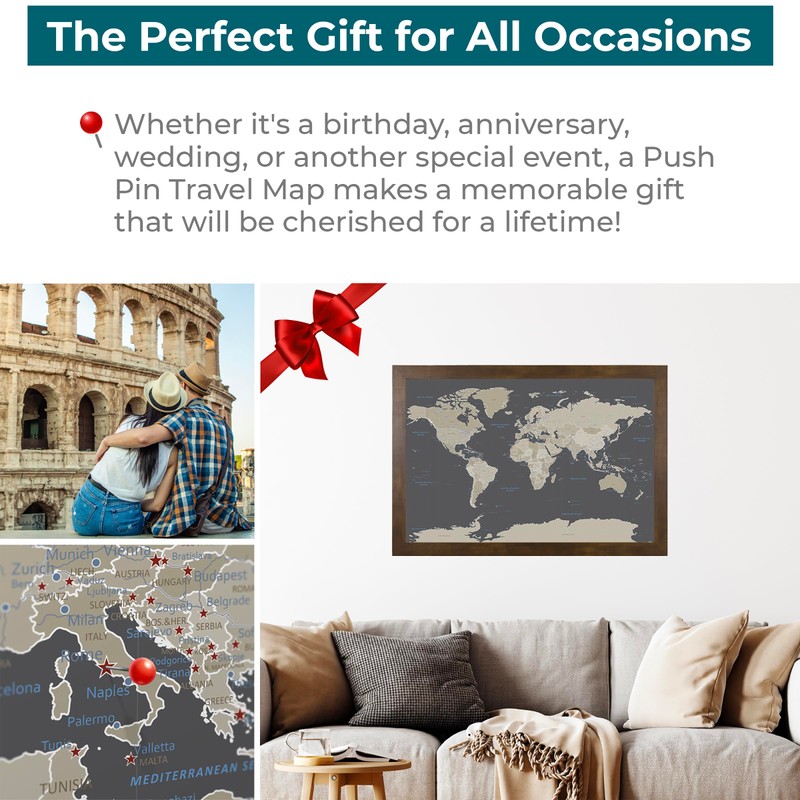 - Unique Gift & Décor Piece: Makes an ideal gift for travel lovers! Our travel pin maps will instantly become your favorite conversation piece. Fits seamlessly into any space, measuring 27.5" by 39.5".