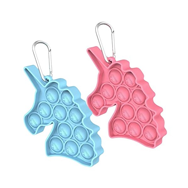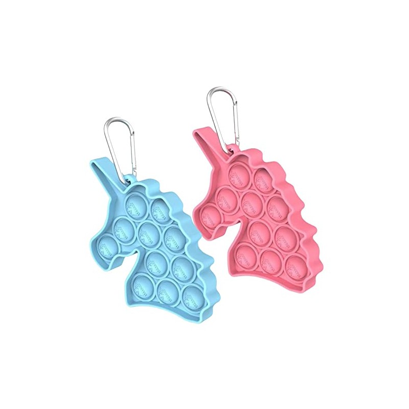 Push Pop Key Chain Set of 2 Squeeze Stress Reliever Pair (Unicorn Set(Blue & Pink))