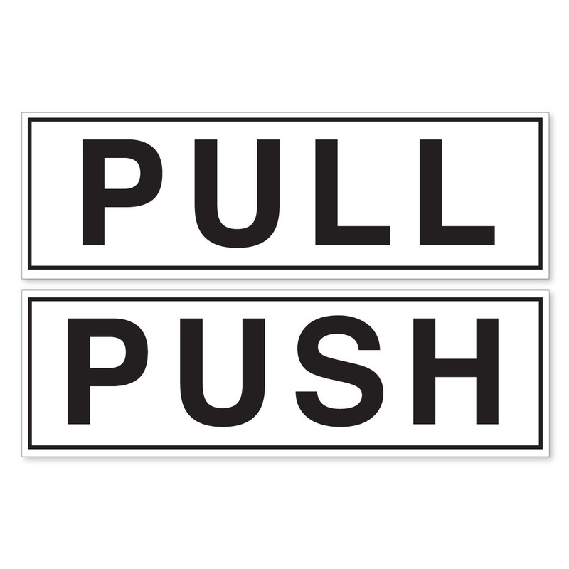- 2 x PUSH & PULL Black and White Horizontal Fit Door Stickers. Each sticker measures 150mm x 50mm