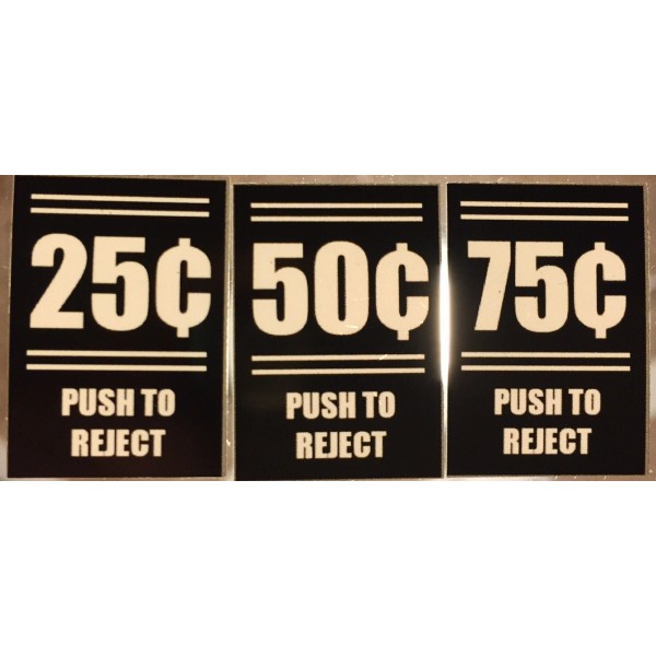 Push To Reject Arcade Coin Door Button Insert .25¢/.50¢/.75¢ Cents Variety Pack