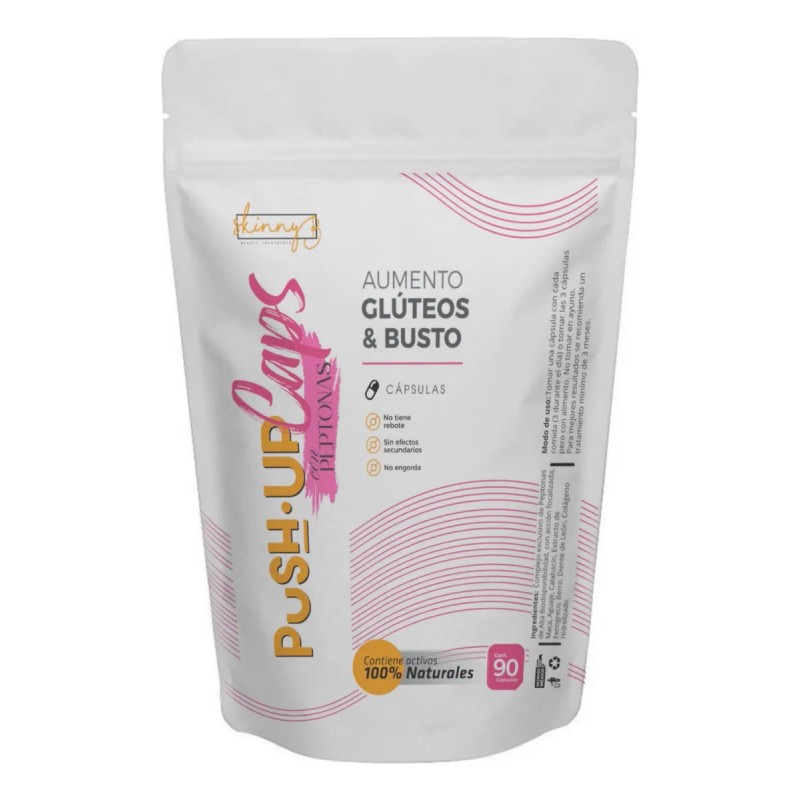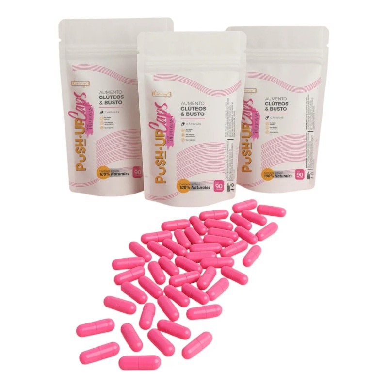 ¿Quieres realzar tu figura de forma natural, sin procedimientos invasivos? Las Push Up Caps están diseñadas especialmente para ti. Este tratamiento de 3 meses potencia el desarrollo y firmeza de glúteos y busto gracias a su fórmula herbal 100% natural, libre de hormonas artificiales y enfocada en resaltar tus curvas de forma saludable y progresiva.