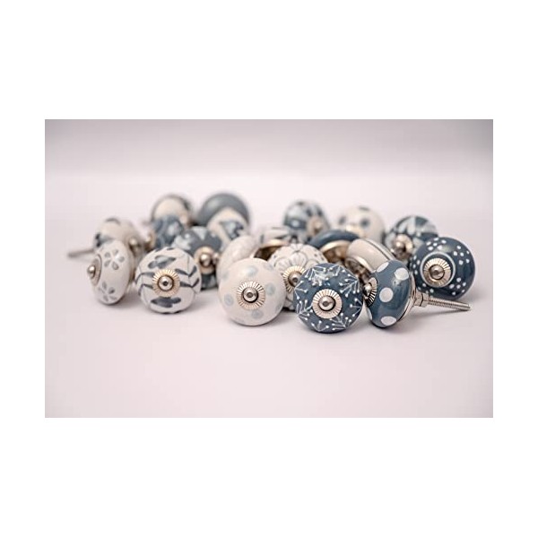 PUSHPACRAFTS Hand Painted Ceramic Cupboard Drawer Knobs 20 Pieces Grey & White Knobs
