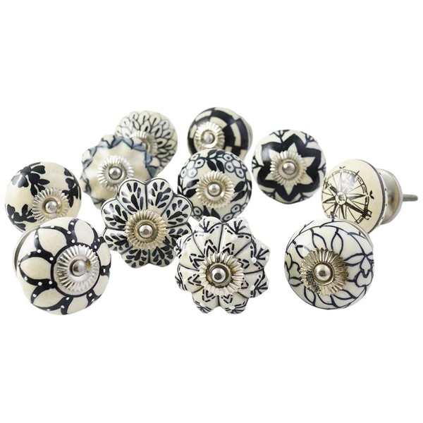 PUSHPACRAFTS Pack of 20 Black and White Ceramic Cupboard Handles