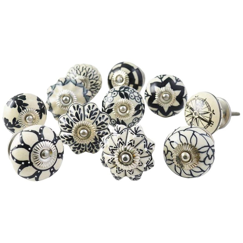 - 20 x Black and White Ceramic Cabinet Door Knobs Each set consists of 10 pairs of the above design.