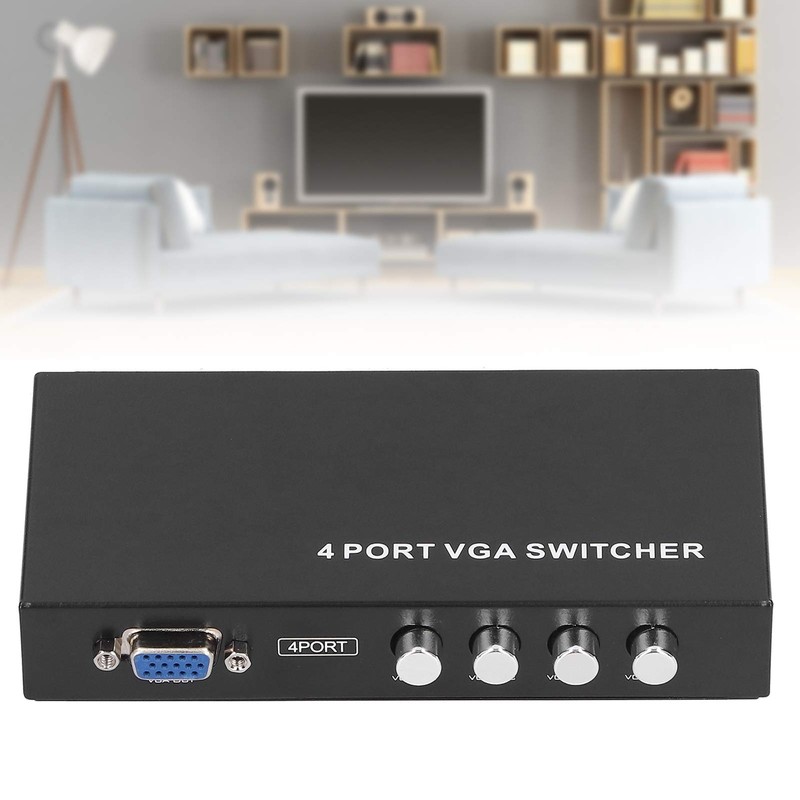 - 4 inputs and 1 output plug and play, no other software is required. Support VGA, xvga, svga, uxga and multi-synchronization display, does not support ddc, ddc2, ddc2b