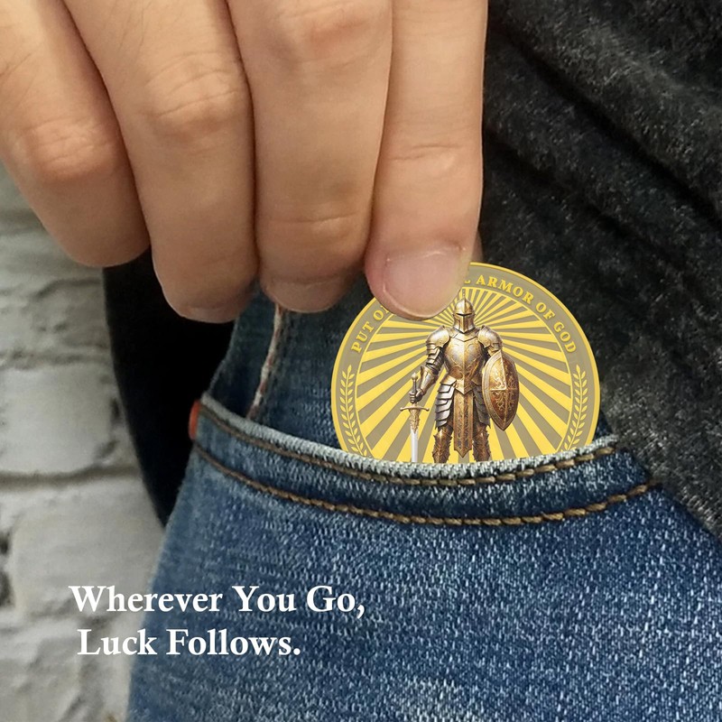 Put on The Full Armor of God Challenge Coin - Zinc Alloy Pocket Token, 3D Engraved Spiritual Protection Collectible, Inspirational Christian Gift for Faith, Military, and Daily Encouragement