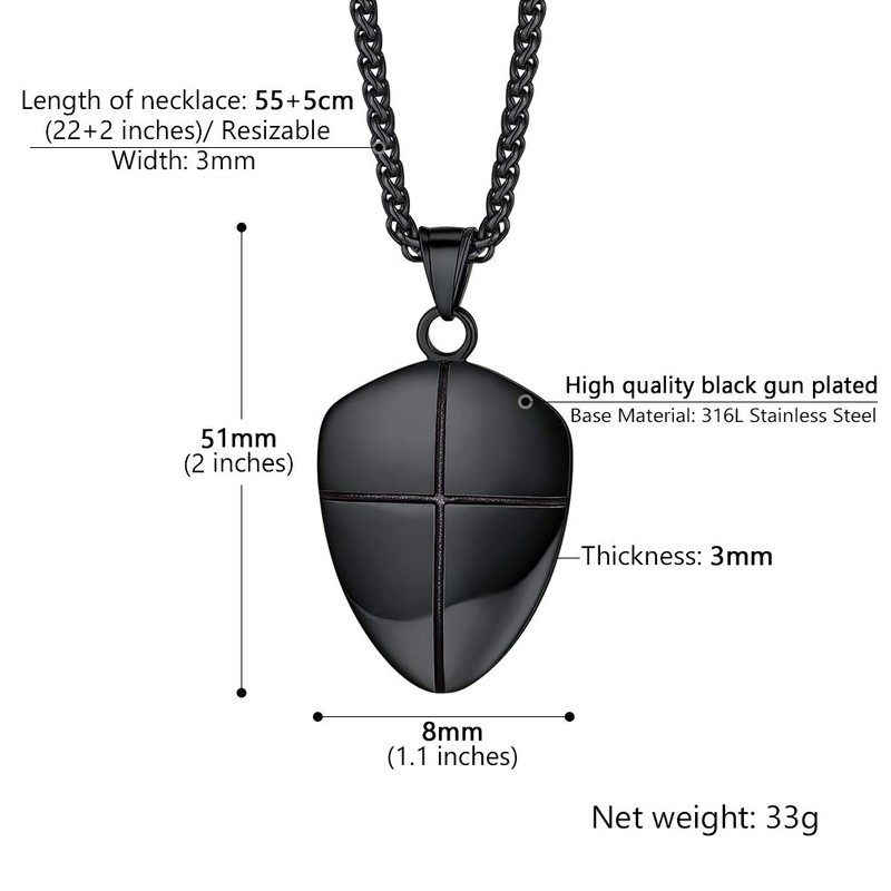 Put On The Full Armor of God Shield Necklace Black Pendant Chain Catholic Christian Jewelry Bible Verse Joshua 1:9b Religious Men Women Cross