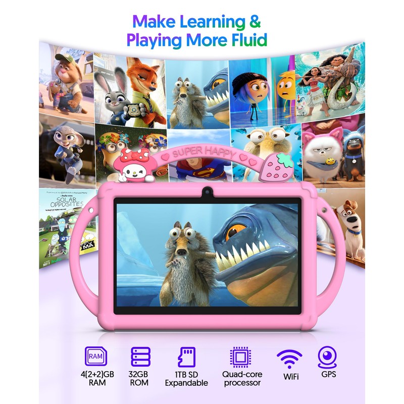 • NEW ANDROID 13 KIDS TABLET - This Kids tablets android is equipped with the latest Android 13. Powerful quad-core processor. Run smoother when open apps and loading the pages. 4GB RAM(2+2 expansion) and 32GB ROM and Supports Micro SD card expand up to 1TB. so that you can storage more photos and videos. Tablet passed the GMS certification,you can download thousands of apps, such as, Netflix, YouTube, Skype, and more popular apps.Let your child explore games, media, e-books, drawing, and note-taking for an engaging learning experience