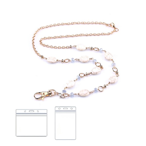 Putorex Lanyards Necklace Natural Stone Beaded Lanyards with ID Holders for Keys &ID Badges for Women (Crack)