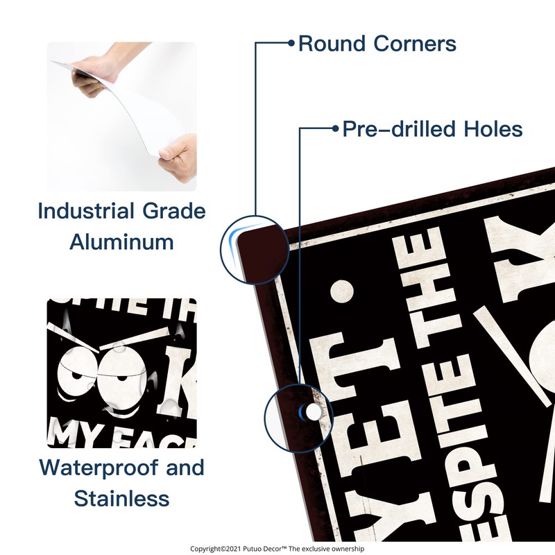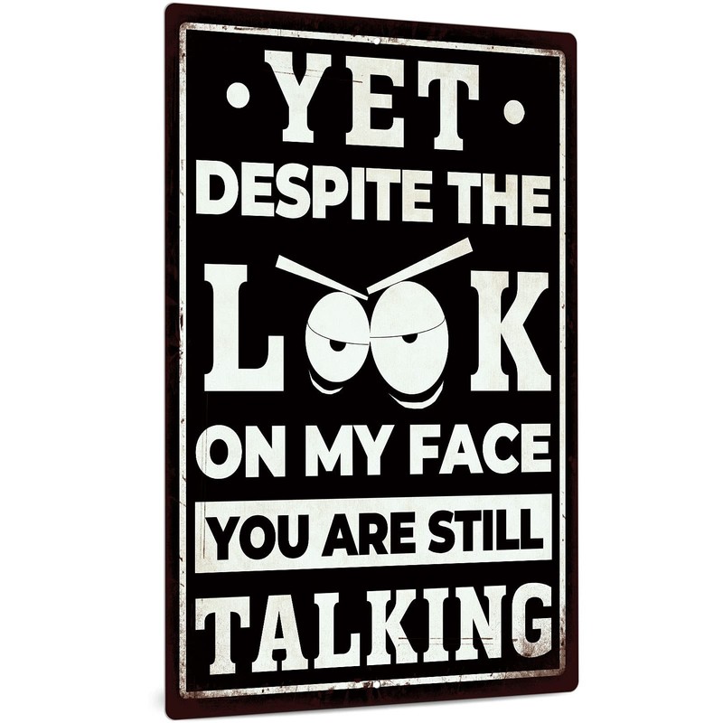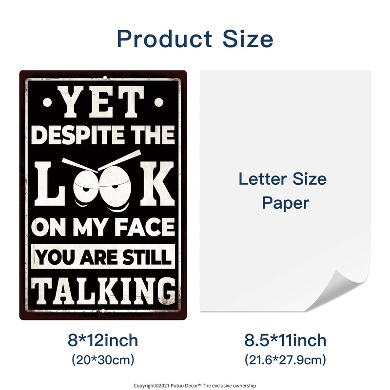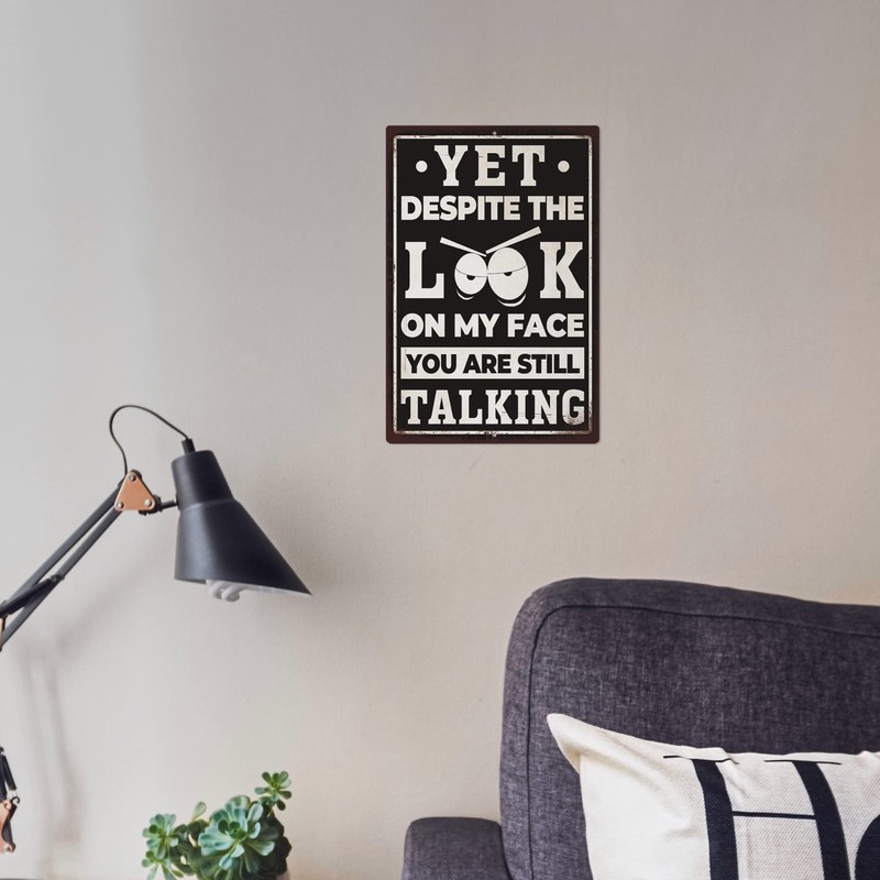 Putuo Decor Funny Sarcastic Metal Sign, Man Cave Bar Decor, Yet Despite the Look on My Face You Are Still Talking, 12x8 Inches