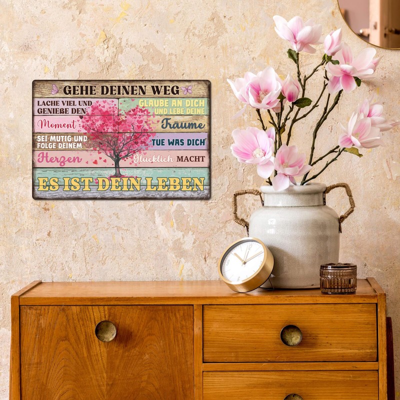 Putuo Decor Tin Sign - Gehe deinen Weg - Motivational Poster for Joie de vivre