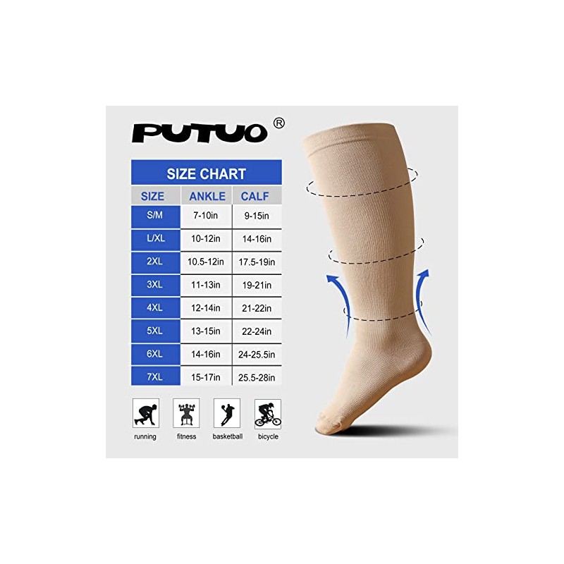 - Plus Size: we have 2XL, 3XL, 4XL, 5XL, 6XL, 7XL plus size compression socks for flight, support, medical, travel, running, pregnancy etc. Suitable for wide calf.