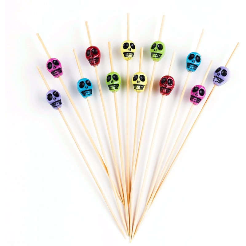 PuTwo Cocktail Picks Handmade Bamboo Toothpicks 100ct 4.7" in Multicolor Skulls