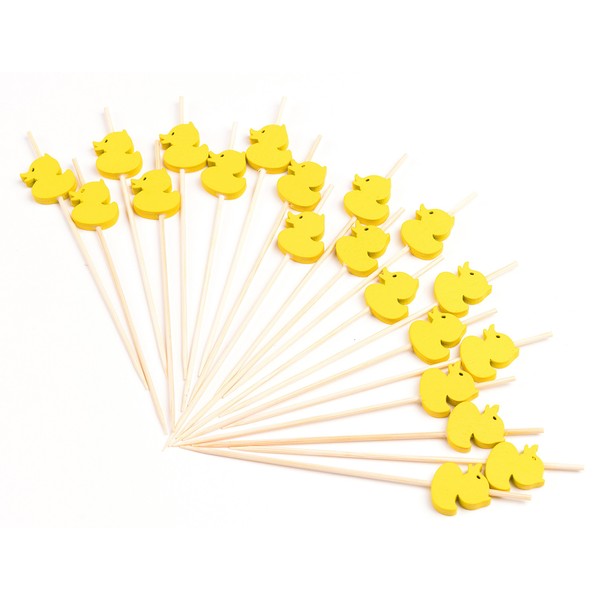 PuTwo Cocktail Picks Handmade Bamboo Toothpicks 100ct 4.7" in Yellow Ducks