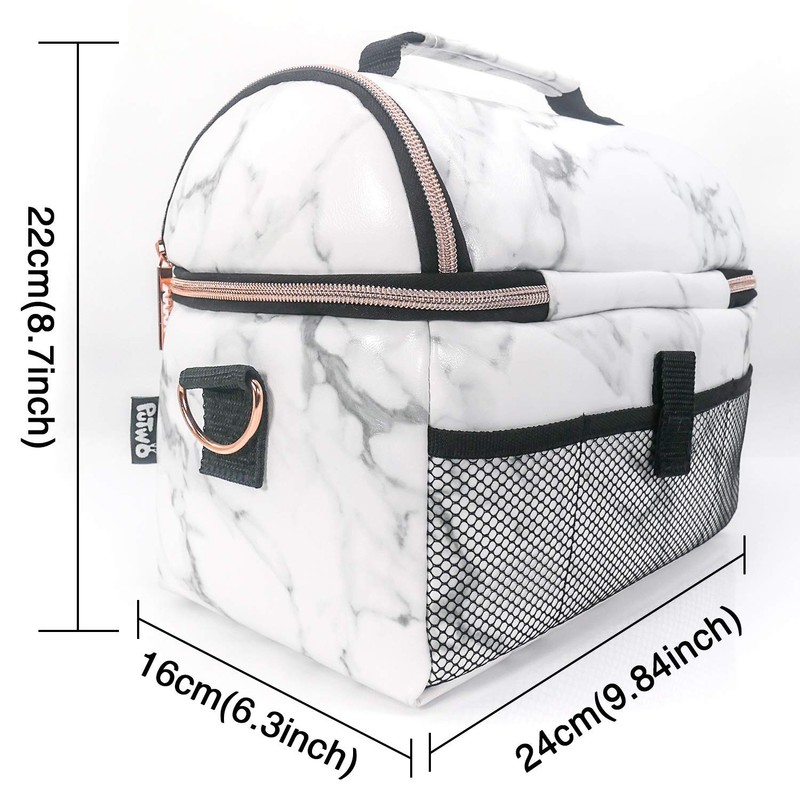 PuTwo, Loncheras aisladas de 8 litros, con doble compartimento, a prueba de fugas, con correa de hombro ajustable, bolsa de preparación de comidas congelable para mujeres, bolsa de almuerzo de mármol