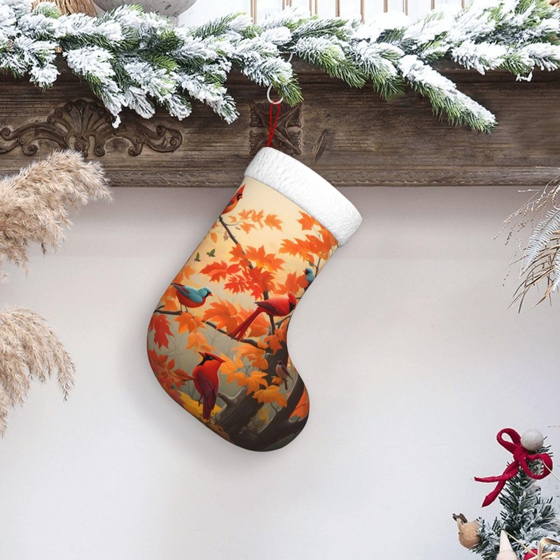 PUTWULB Fall Cardinal Birds and Maple-Leaves Large Christmas Stockings, 17.7 Inches Xmas Stocking Fireplace Hanging for Xmas Family Decor