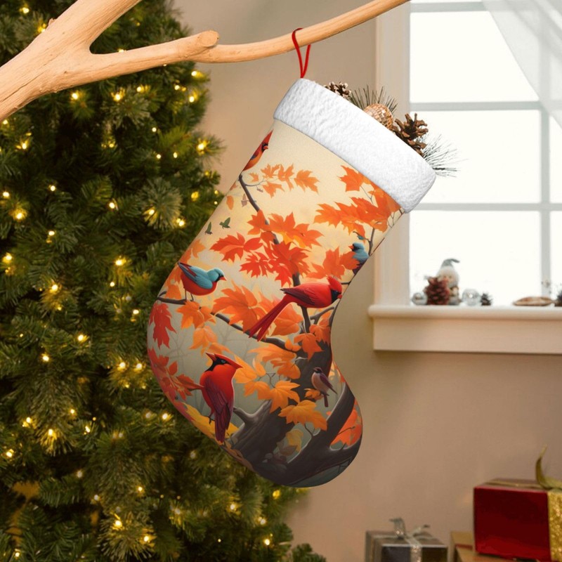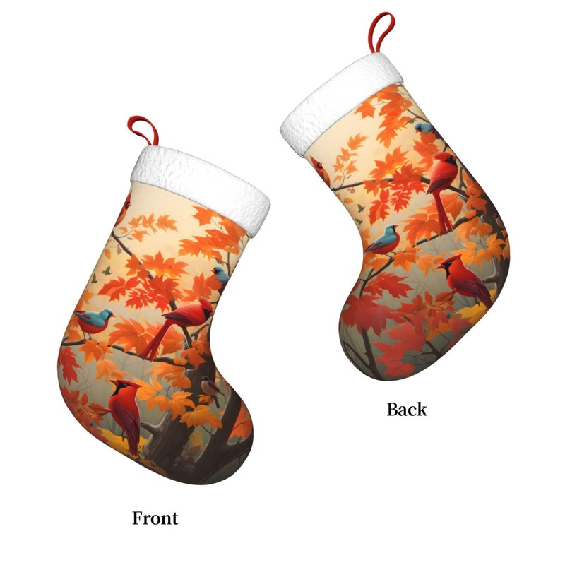 PUTWULB Fall Cardinal Birds and Maple-Leaves Large Christmas Stockings, 17.7 Inches Xmas Stocking Fireplace Hanging for Xmas Family Decor
