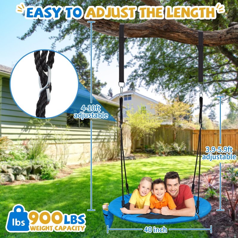 Puulivee 900lbs 40" Outdoor Tree Swing for Kids Adults | Anti-Sagging Flying Saucer Swing for Swing Set | 900D Wear Resistant Round Swing for Outside Tree with Zipper Pocket & Hanging Straps
