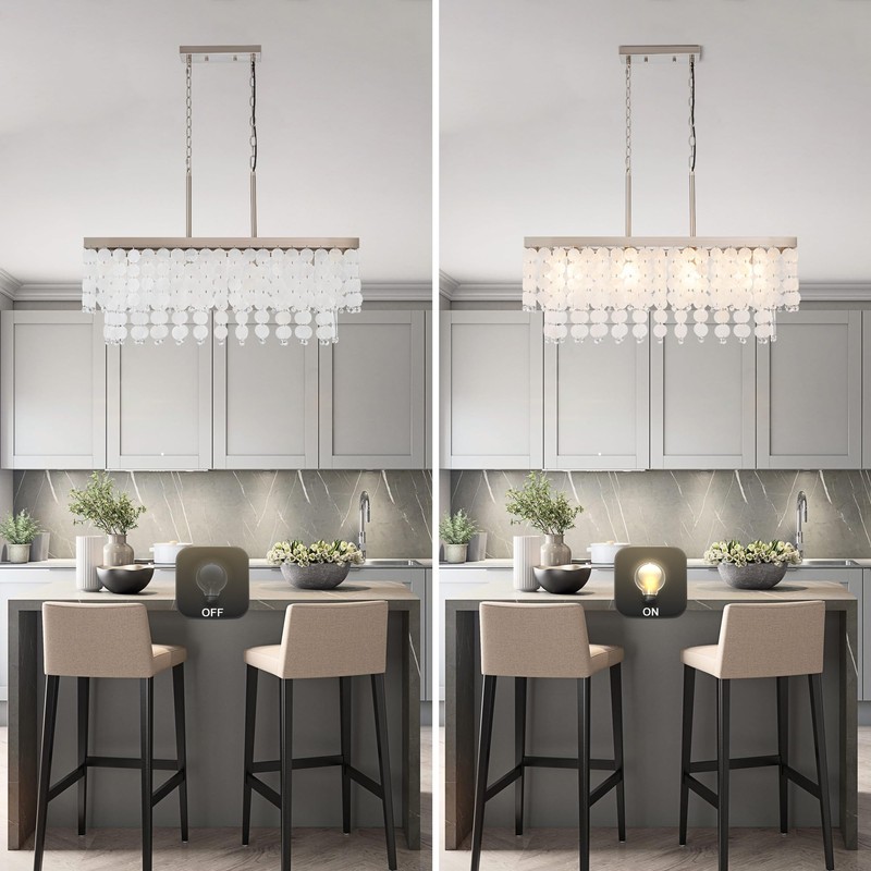 - [Easy Installation]: With all the necessary mounting hardware included, installing this kitchen island hanging light is a breeze. It is compatible with vaulted, parallel, and sloped ceilings, making it versatile for any space. And if you ever encounter any issues during installation or use, our 24-hour customer support team is here to help. Note: We utilize genuine capiz seashells, so it's common to find natural spots or slight traces resembling dirt due to exposure to seawater or soil. We aim to preserve its authentic style. Please consider this before placing your order.