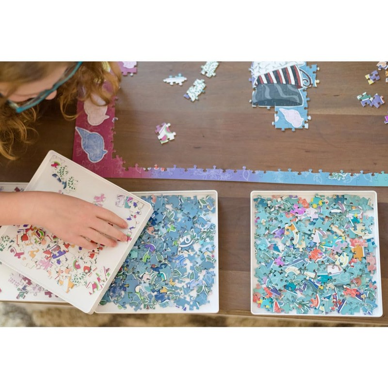 - White Sorting Trays - Easier to spot your colored pieces. Jigsaw puzzle holder for adults and kids. Single tray size: 8" x 8" x 3/4".