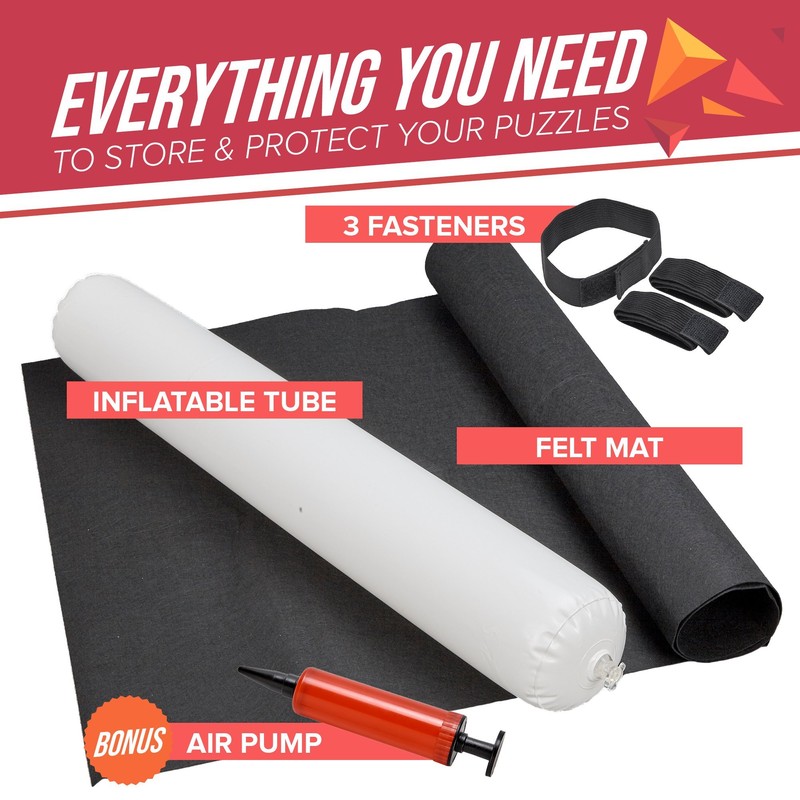 Puzzle Roll Up Mat - Store and Transport Jigsaw Puzzles Up to 1500 Pieces - 46" x 26" Felt Mat, Inflatable Tube, and 3 Elastic Fasteners - Plus Bonus Pump - by Nessies's Playground