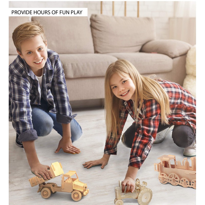 - HIGH-QUALITY DUMP TRUCK WOODEN PUZZLE 3D KIT - The Dump Truck puzzle is made of high-grade 3mm natural wood. All puzzle pieces are laser cut & sanded thoroughly to ensure smoothness of all edges. Adorned with realistic details like dump box, wheels, pipes, and cab. The natural wood color makes it easy and fun for painting and customizing with your favorite colors. Once fully assembled, the dump truck DIY model will hold stand on its own, being ready to exhibit & display on any surface you like.