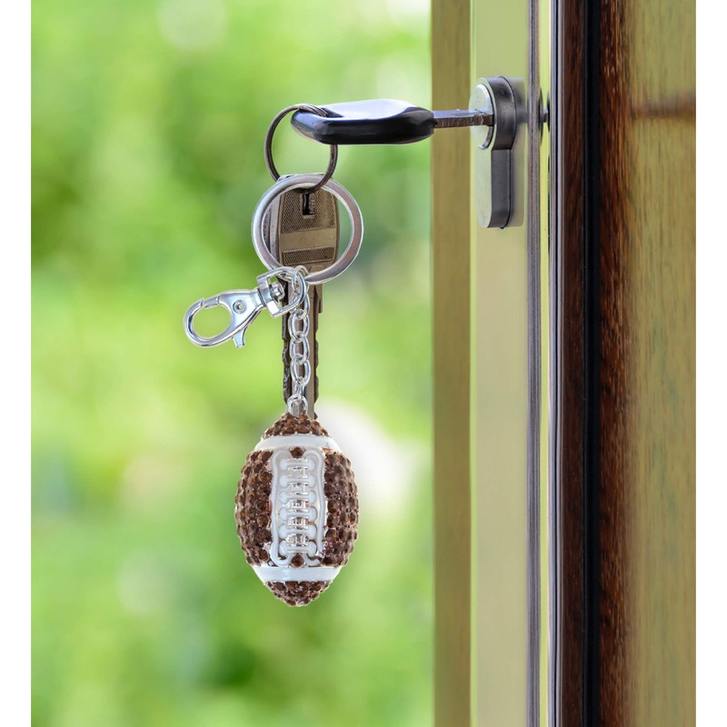 - THE FOOTBALL ELEGANT SPARKLING CHARM KEYCHAIN COMES WITH UNIQUE EDGY DESIGN YOU WILL LOVE - This high quality, rich & beautiful unique charm accessory will make sure everyone's eyes are on you, giving you the added fashionable edge and appeal. At the same time the football keychain is useful & functional, it can fit many keys in all styles & shapes and the clasp can be used to secure and bling to any bag, purse or similar. Just clip it on & make a beautiful fashion statement with this accessory.