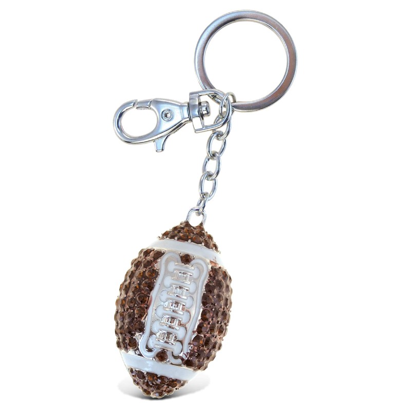 - HIGH QUALITY SPARKLING CRYSTALS & RUST RESISTANT ALLOY CONSTRUCTION: The trendy and fashion forward bling football elegant key ring decoration is made from premium rust resistant metal alloy and covered in high quality shiny rhinestone crystals. This cute yet elegant silver-tone metal keychain is resistant to pulling and the lobster clasp will keep it secure on your keys, backpacks, purses, clothing and more without worrying about it breaking off and makes a beautiful fashion statement.