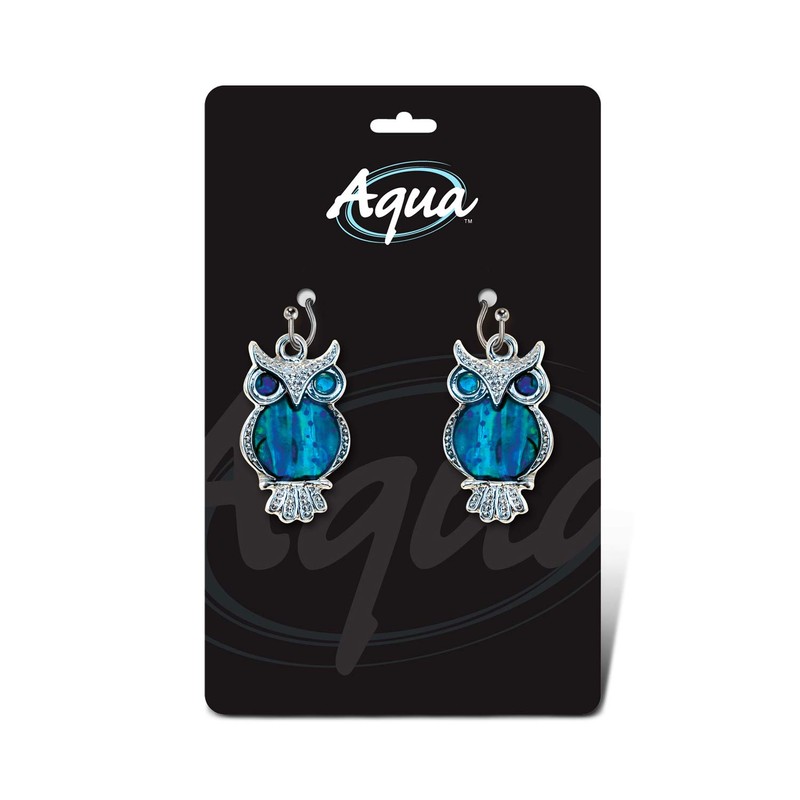 Puzzled Owl Dangle Post Fish Hook Earrings