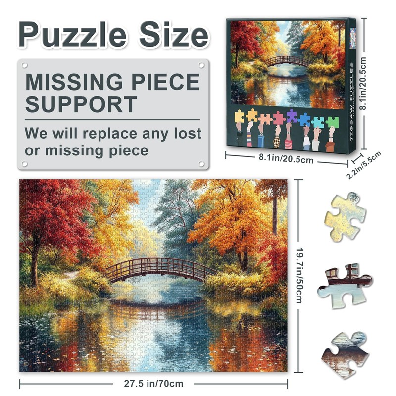 Puzzles for Adults 1000 Pieces, Autumnal Bridge Jigsaw Puzzle, Challenging Adult Jigsaw Puzzles, Calm River Puzzle as Home Decor Finished Size 50x70cm