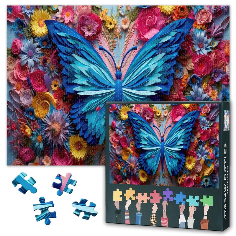 Puzzles for Adults 1000 Pieces, Butterfly Jigsaw Puzzles Blue Flower Butterflies Artwork, Difficult Animal Plant Challenging Puzzle Home Decor Gift Toy for Family 27.5" x 19.6"