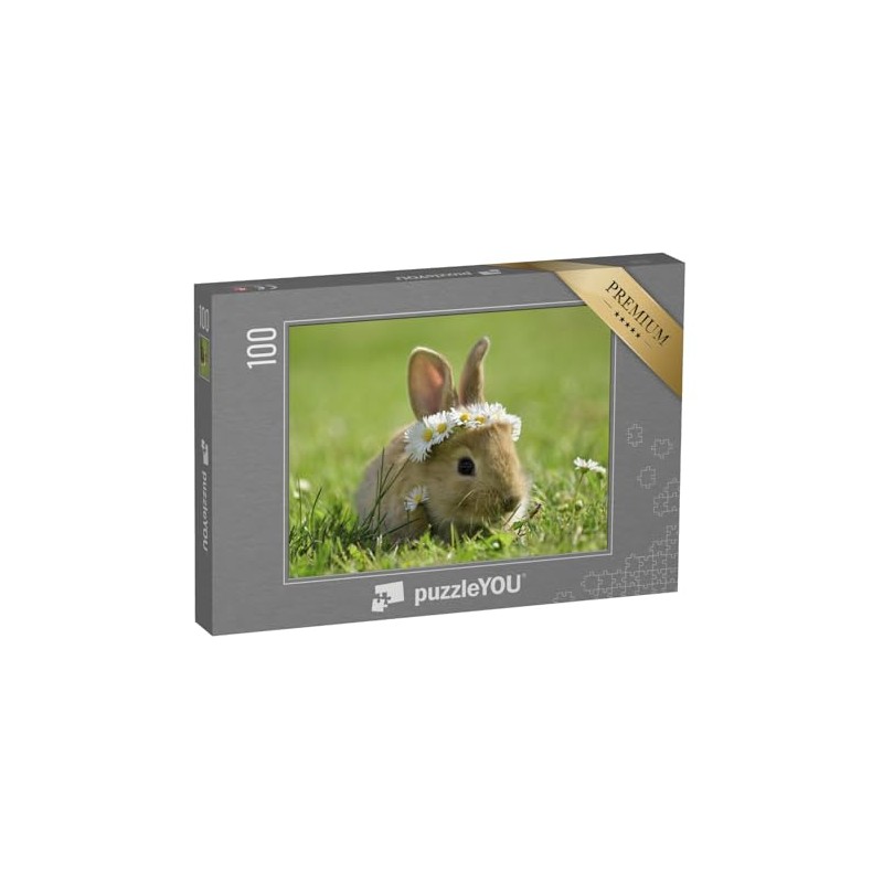 puzzleYOU: Jigsaw Puzzle 100 Piece Cute Little Rabbit with Daisy Wreath - From the Rabbit Puzzle Collection