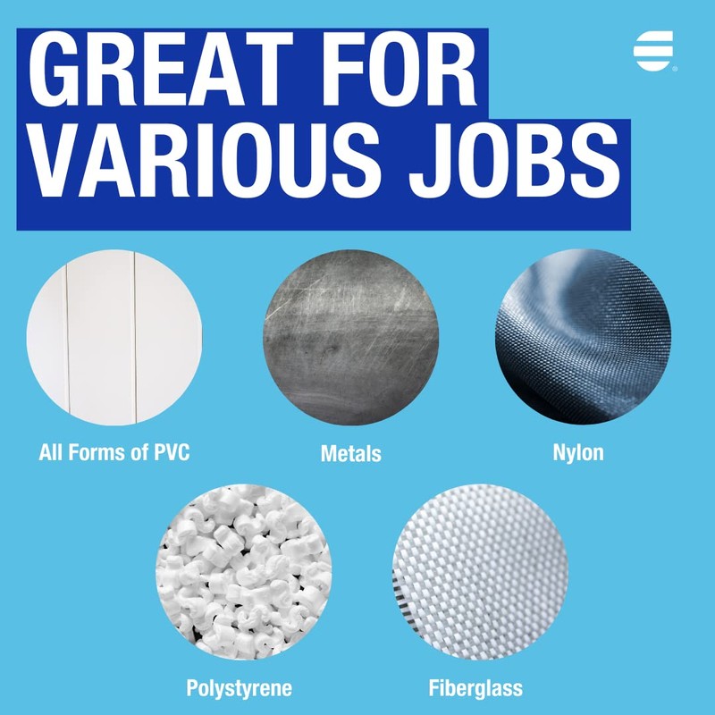 - STRONG & TOUGH: PVC TrimWelder SlowCure provides strong, tough bonds to all forms of PVC, metals as well as nylons, polystyrenes, and fiberglass. PVC SlowCure can also withstand thermal cycling.