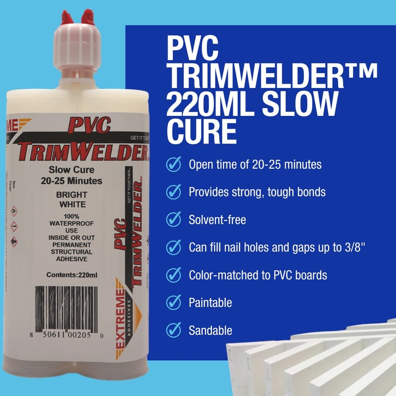 - COLOR-MATCHING: PVC TrimWelder SlowCure is color matched to PVC boards. PVC SlowCure also has a creamy consistency, so it won't foam or drip.