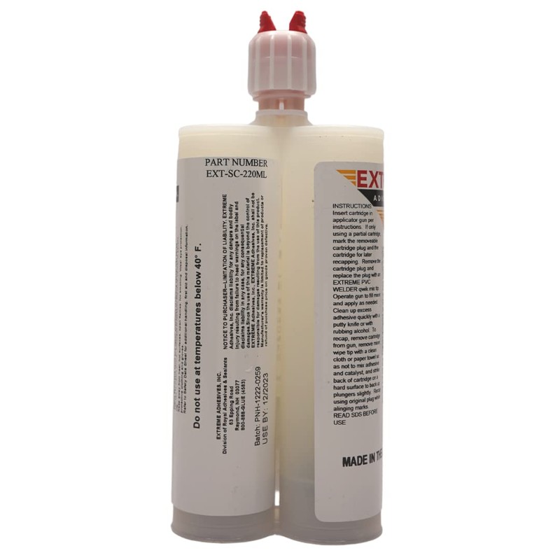 PVC TrimWelder Slow Cure 220 ML Cartridge and 2 Included Qwik Mixers, Will not Foam, Run or Drip, Ready in 90 to 120 Minutes, Medium Viscosity and Solvent-Free White