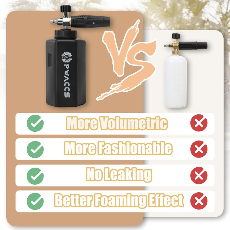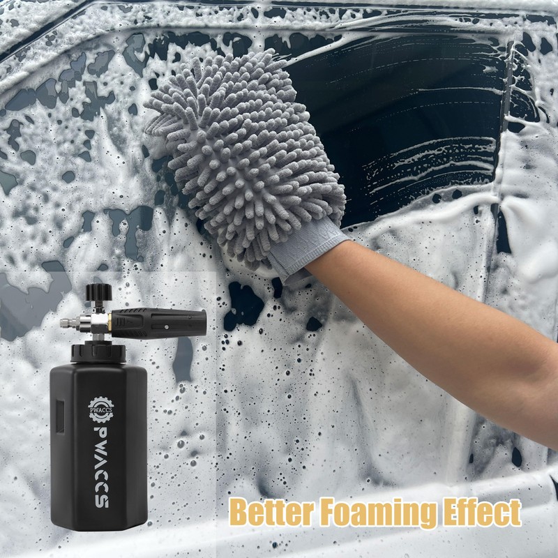 - More Effective Cleaning: PWACCS black foam cannon kit creates thick, rich, snow-like foam, clings to the car's surface, resulting in a more effective and thorough cleaning, ensures thorough cleaning in all areas. Foam sprayer car wash bottle works with pressure washers operating between 1000 and 3600 PSI, making it compatible with most high-pressure washer models.