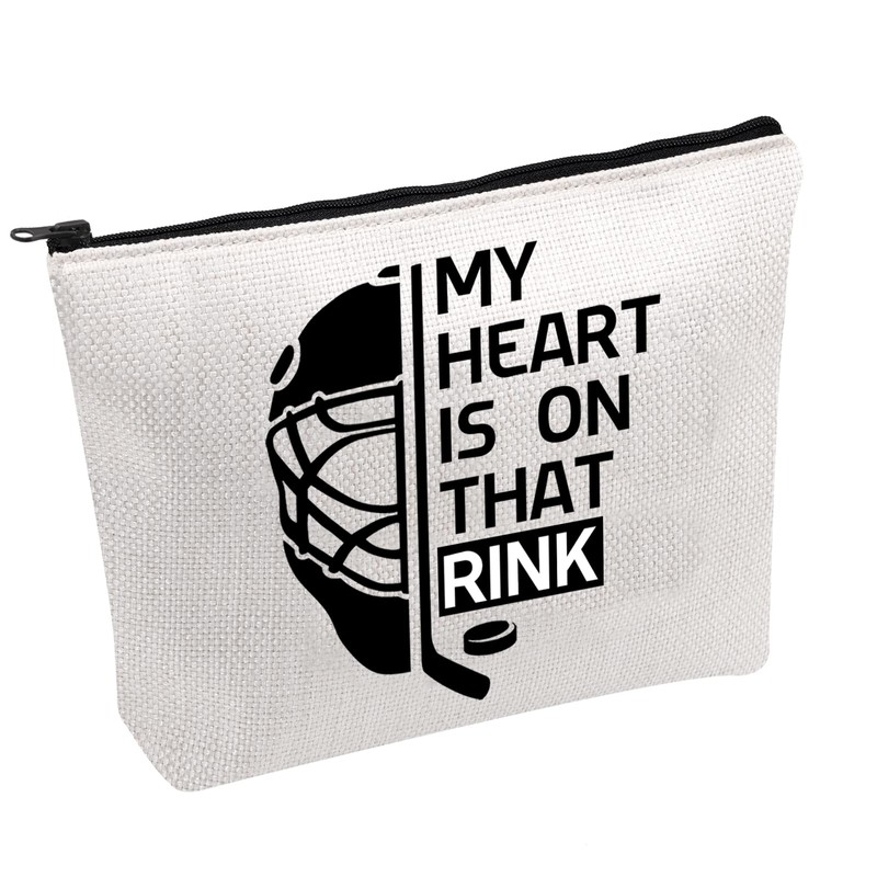 PWHAOO Bolsa de maquillaje de hockey con texto en inglés "My Heart Is On That Rink", bolsa de cosméticos para jugadores de hockey, regalo del día del juego de hockey, On That Rink B