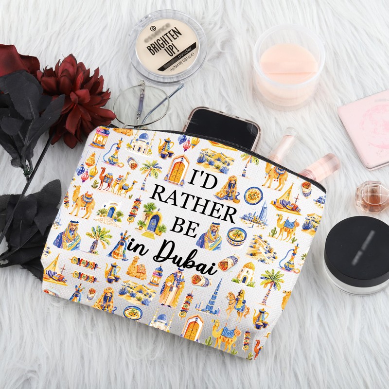 PWHAOO Dubai Travel Gift Rather Be in Dubai Makeup Bag Welcome to Dubai Cosmetic Bag Dubai Souvenir Merch (Rather Be in Dubai MC)