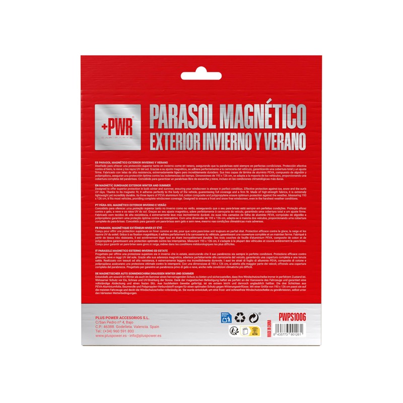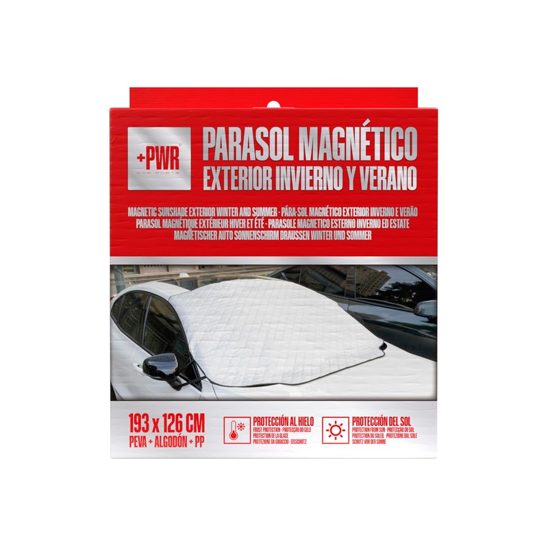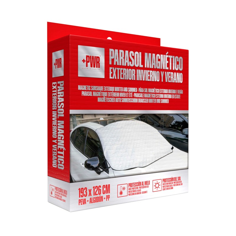- The +PWR Car Parts Exterior Magnetic Sunshade is the ideal protection to keep your windscreen in perfect condition all year round. With a size of 193 x 126 cm, this sun visor fits most vehicles and provides complete protection from ice, snow, frost, sun and heat. Designed to withstand the most extreme weather conditions, it ensures that your vehicle is well prepared at any time of year.