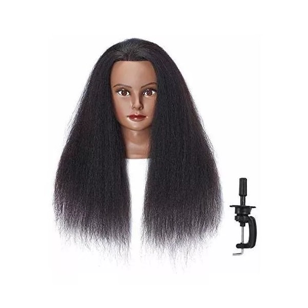 Hairlink 100% Real Hair Afro Mannequin Head Hairdresser Training Head Dolls for Cosmetology Manikin Maniquins Practice Head with Stand (6611B0216)