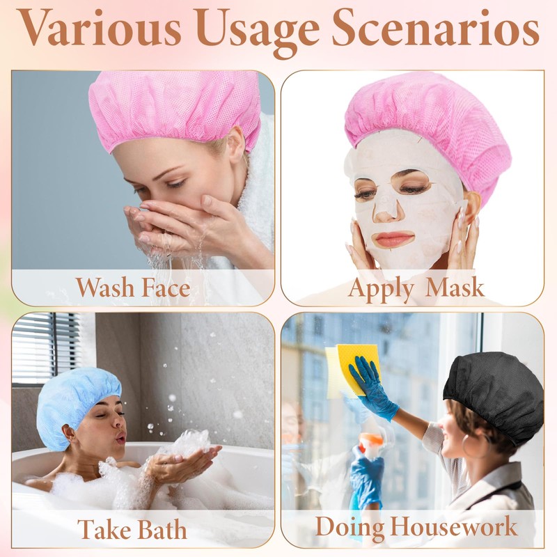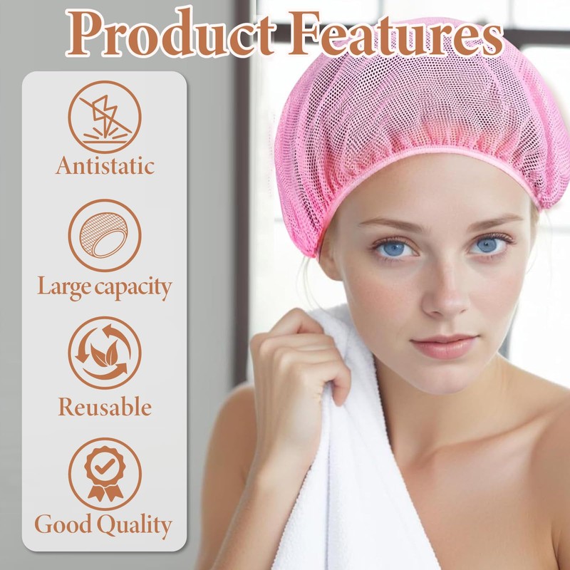 - Multifunctional hair cap: the hair net not only wraps your hair in all directions when showering, but also effectively prevents your hair from getting wet in the shower. You can also wear the hair net when sleeping to prevent your hair from being messy and tangled