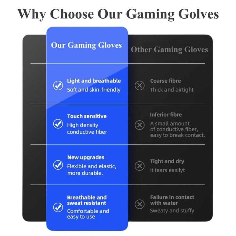• Ultra-Thin & Zero Lag – The fingertips are made with 0.3mm silver fiber. Full-finger touch sensitivity boosts multi-finger claw-grip skills, giving you smooth, friction-free control in fast-paced games. No more sweaty fingers ruining your gameplay!