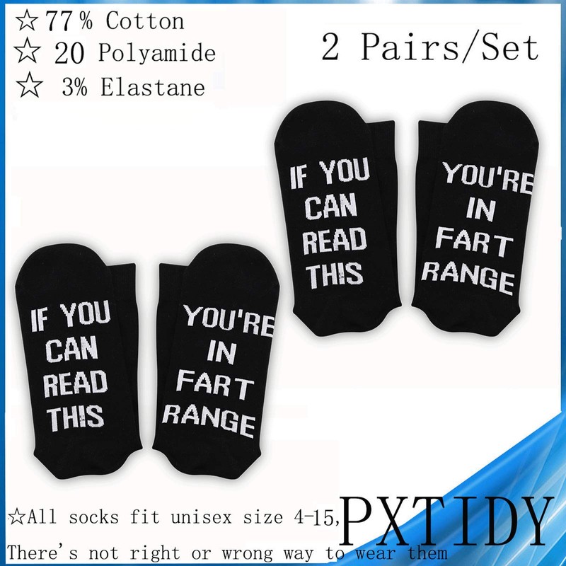 PXTIDY 2 Pairs Funny Fart Meaning Gift If You Can Read This You're In Fart Range Novelty Socks Fart Zone Joke Gift Funny Gag Gift(FART RANGE