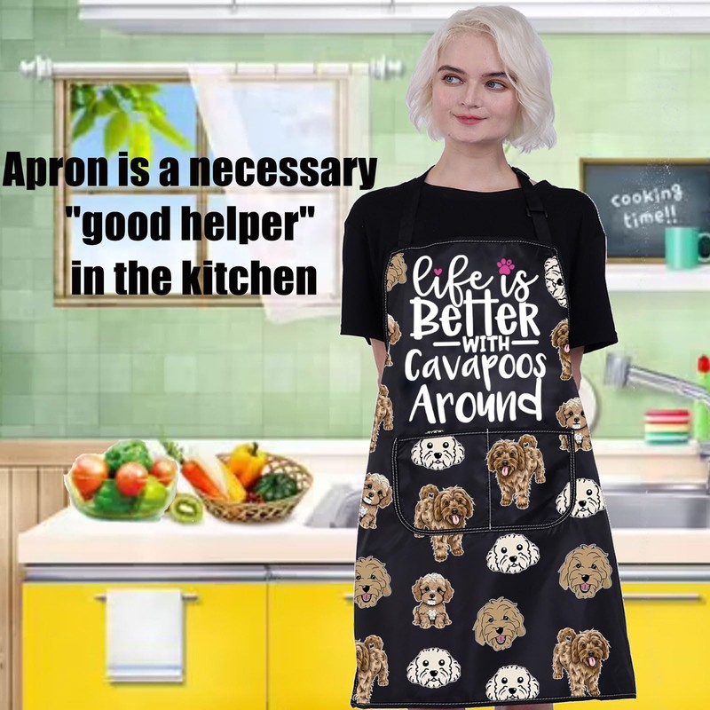 PXTIDY Cavapoos Lover Apron Cavapoos Gifts Life is Better With Cavapoos Around Kitchen Apron Cavapoo Dog Mom Gifts