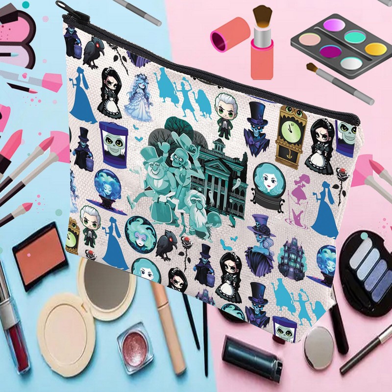 PXTIDY Haunted Horror Mansion Role Makeup Bag Haunted Movie Lover Gift Welcome Mortals Foolish Zipper Bag Halloween Party Gift