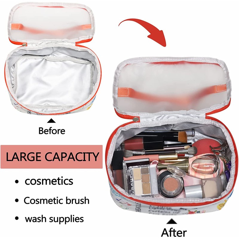 - ☆Travel Cosmetic Case: Portable makeup organizer printed with funny quote and pattern.Easy to store small items.This make up bag is enough to hold your day-to-day makeup, like lipstick, cream,perfume,lip gloss, makeup brushes, eyeshadow and so on,to make your daily make-up things and other beauty things organized and protected.