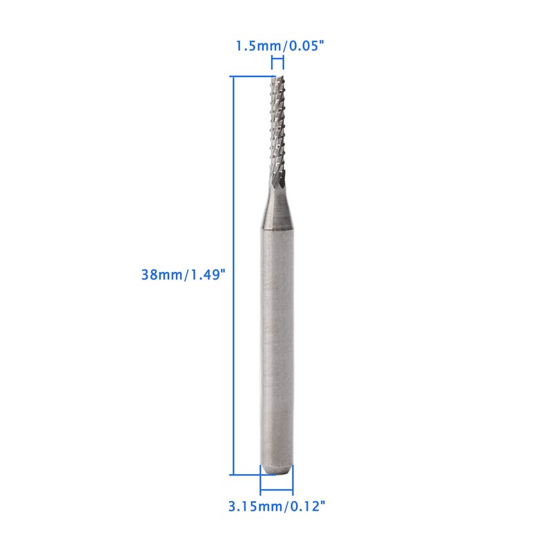 - Blade diameter: 1.5 mm. Shaft diameter: 3.15 mm/0.125 inch. Total length: approx. 38.00±0.20mm